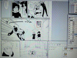 上の写メはトーンとかベタのデジ作業中の原稿ですが、まだ全部ペン入れが終わったわけじゃなく…orz